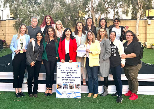 עליזה מספרת על אימוץ גני חינוך מיוחד וגנים עם לקויות תקשורת, ועבודה מול אוכלוסיה מיוחדת בוגרת של מעש ושח"ף. המפגשים, הפעילויות המשותפות וההפנינג המוקפד מייצרים נקודות מפגש בין התלמידים לחברה המגוונת, ולעליזה חשוב להצמיח את היוזמות מהמורים והתלמידים – "עבודת צוות של ממש, לכולם יש חלק בהצלחה הרב פעמית הזו – למורים, לתלמידים ולהורים. אין פרס לי – זה הפרס שלנו. ראשית, הרכזת החברתית שלנו, המדהימה – לי רזיאל, מודל ודוגמא אישית למעורבות חברתית, תכנון, פיתוח, היא ראש החץ המוביל את הנתינה בבית הספר. היא יחד עם המחנכים והמחנכות – שיוצאים ויוצאות עם 3 כיתות לפחות, לפחות פעם בשבוע לשלוש שעות התנדבות, כי טוב להם לקחת חלק. תודה ענקית לצוות ההנהלה היקר שלנו, צוות המורים כולו – אחד אחת, וצוות ההנהגה ההורית – משה מועלם וזיוה אפריאט, שמרימים כל פרוייקט שצריך להרים מצידם. אנחנו עם משימה ושליחות, והפרס הוא מבחינתנו אישור שאנחנו צועדים כמו תמיד, בנתיב הנכון."