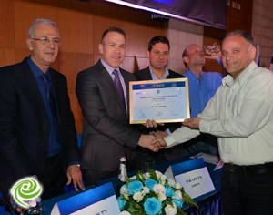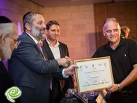 בתמונה: גזבר העירייה מר עודד לוי מקבל את הפרס מידי שר הפנים גלעד ארדן.