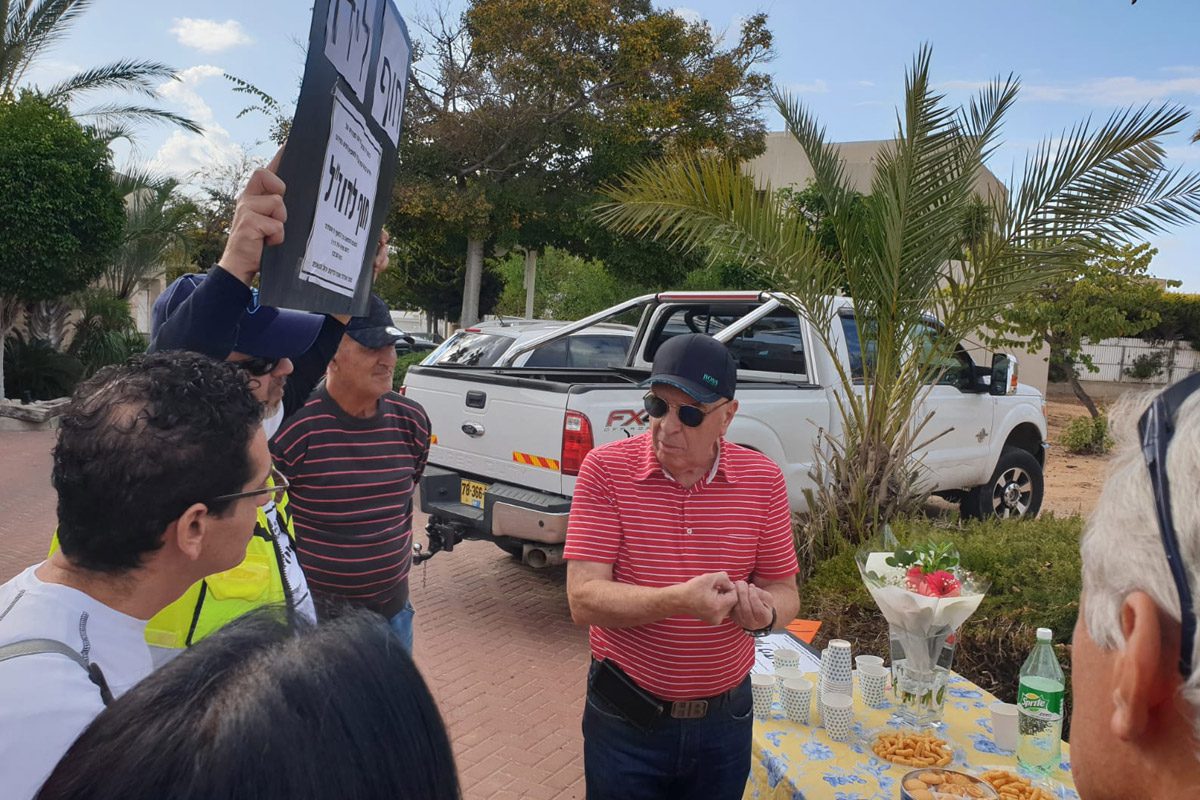 להפגנה הגיעו רק 15 איש אך זה לא מנע מיו"ר הוועדה המקומית לכבד את נוכחותם, תרתי משמע. שמעון כצנלסון יצא אל המפגינים, העמיד שולחן כיבוד והזמין אותם לעבור את הכביש לכיוון ביתו, שכן על פי תנאי ההפגנה, הם לא יכלו לעשות כן. כצנלסון אמר לשוטר כי זה בסדר וניהל דיון ענייני עם המפגינים ונתן תשובות לשאלותיהם. "אני תמיד קשוב לרגשי הציבור. אנחנו לא חייבים להסכים על הכל, אבל כמו שאמרתי, הדלת שלי תמיד פתוחה. היום גם הבית שלי היה פתוח ואם יש נושא ֿ, אני תמיד מוכן לעמוד ולתת תשובות לכל שאלה.