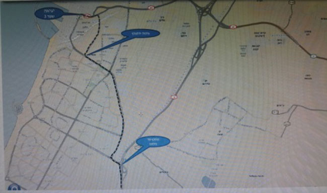 שדרות מנחם בגין, מחלף עד הלום, כביש 4 לדרום, צומת סילבר לכביש 3, צומת הודיה, 232 עד צומת גבעתי, כביש 35 עד אזור התעשייה הצפוני קרית גת, מפעל "אינטל".
