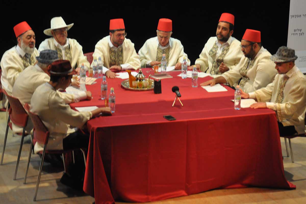 סביב שולחן אדום ומרובע, ישובים תשעה פייטנים ובראשם אברהם אבי אדרי כיאה לשירת קודש, מלווים בשני נגנים אנדלוסיים שניגנו ב- עוד ובכינור, הנעימו את הפיוטים וליוו את הקול המסתלסל והחודר של הפייטנים הכי קרוב שניתן לאווירת בית הכנסת, בהרגשה אינטימית ונעימה. כל פייטן בתורו שר בית והוסיף את ההטעמה האישית שלו והקהל כולו פייט ושר ויחד איתם, חלקם אף ידעו את הפיוטים בעל פה, מהבית בו גדלו.