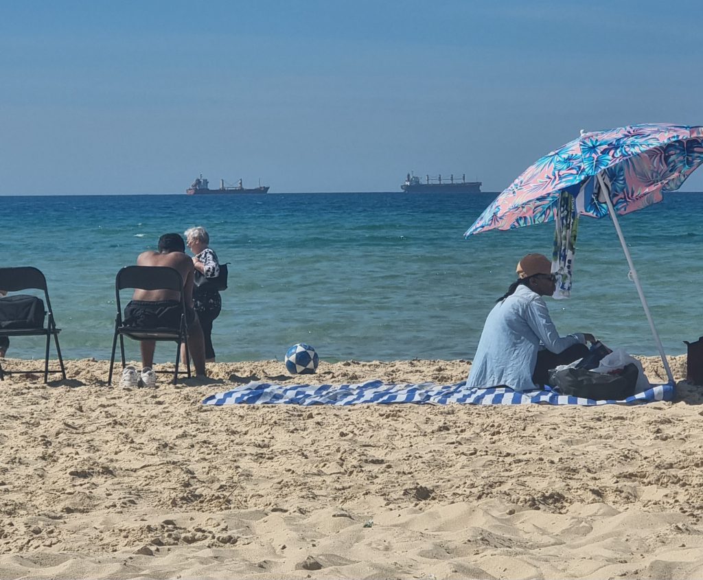 בתמונה- אשדודים בני ישראל בימים בהם ניתן לשבת ללא תופעות הלוואי של ה"עפולים".