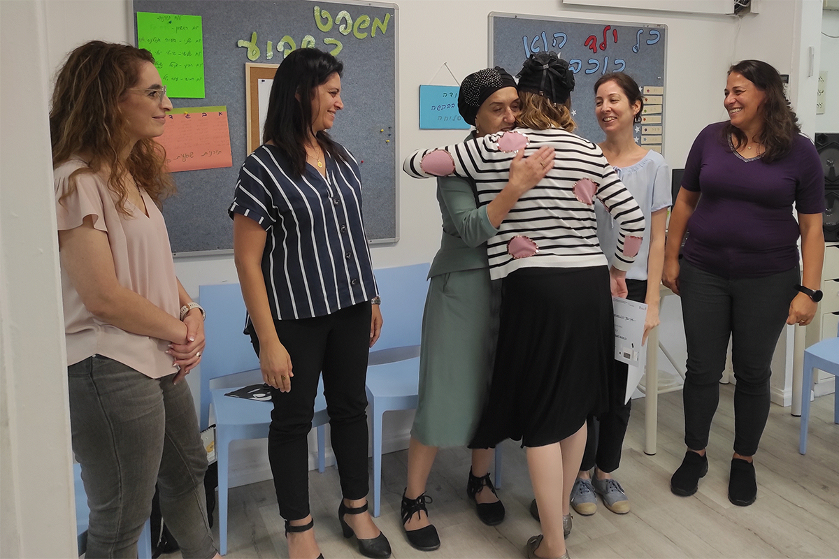 מסיבת הסיום וטקס חלוקת התעודות היה אירוע מרגש. הנשים נפגשו לראשונה פנים מול פנים עם המדריכה והצוות המלווה. בטקס נכחו מנהלת מחלקה ב'-ג' – אתי היינה, רכזת תכנית נושמים לרווחה במרכז עוצמה – נוית דאובר, עו"ס מיצוי זכויות וקהילה – בתיהל קדישי, מדריכת הקורס מטעם עמותת "תפוח" – עמית גרנות ונציגת המגזר החרדי – חנה בוסקילה אשר ליוותה את הקורס מהשלבים הראשונים של איתור הנשים ודאגה, במהלך כל המפגשים, להתאמת התכנים למגזר והייתה ה"דבק" שאיחד בין כולן ברגישות אנושית גדולה.