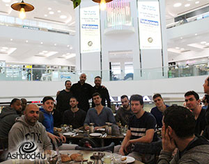 מאיר טפירו והלוחמים הצהובים הגיעו לקניון שאת פניהם מקבלים שלטים צהובים המברכים את השחקנים, המארח הרשמי, שרון ביטון מבליקר בייקרי דאג לחבר שולחנות לכל שחקני הקבוצה והצוות הניהולי ופינק אותם בארוחת בוקר מפנקת במיוחד.