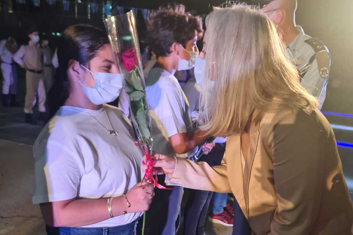 מנהלת בית הספר, הגב' הדס בן שושן איחלה לשוחרים החדשים השתלבות מהירה בבית הספר ובמסלול ההצטיינות הלימודית והחברתית כאחד, והוסיפה: "מרגע שבחרתם ונבחרתם, הצבתם לעצמכם רמת דרישות גבוהה. עובדת היותכם לבושים במדי חייל האוויר מעידה יותר מכל על הערכים החשובים שלקחתם על עצמכם: אחריות, דבקות במטרה וחתירה להצלחה, אמינות, דוגמא אישית ראויה, משמעת ורעות".