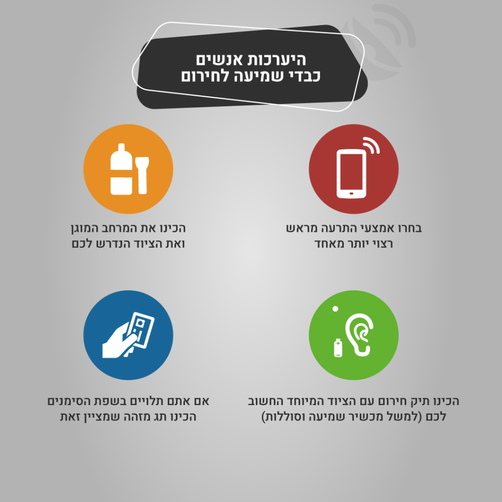 6. * לכבדי שמיעה יש את הזכות לקבל מכשיר על מנת שיותרעו בביתם בעת אזעקה.