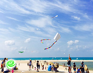אטרקציה נוספת על שפך הנחל לים המשתתפים קיבלו ערכות עפיפונים להכנה והעיפו אותם על רקע הנוף היפיפה של מפגש הנחל הים והנמל.