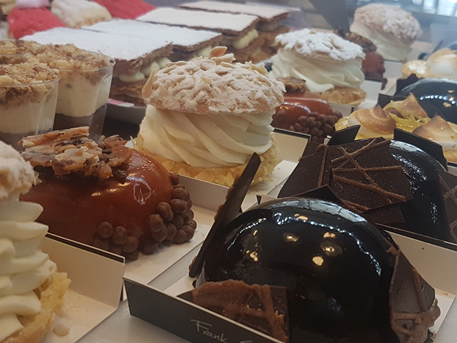 בין היתר מציע פרנק שופן לישראלים את מרכולתו בפריז הכוללת מאפים, עוגות וקינוחים לרבות לחמי מחמצת, בגט ממתכון סודי, קרואסונים ועוגיות ממיטב הקלאסיקות הצרפתיות, לצד מגוון גדול של עוגות אישיות וקינוחי ראווה, כאשר הבולטים בהם הם המילפיי במספר גרסאות, אקליירים במגוון מילויים, בקרה (מוס פרלינה קליל עם מרנג ואגוזים בתוך ציפוי של כדור שוקולד חלב), מוס פירות יער וקסיס, טארט אגסים אישי, עוגת גבינה צרפתית עם פירות יער, פארי-ברסט (מאפה צרפתי במילוי קרם וניל), פבלובות, עוגות משפחתיות כמו הטרופזיאן (בריוש ענק במילוי קרם פטיסייר עשיר) והסנט אונורה. כמו כן, ניתן לבצע הזמנות למגשי אירוח עבור מפגשים פרטיים ועסקיים.