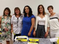 בתמונה: סימונה מורלי, מנכ"לית הרשות, מיכל מאיוסט – מונארט, אילנה סיסו – אדמה אגן, הדס בן שושן, מנהלת בית הספר מקיף א' ובוגרי מיזם משקפיים ורודים.