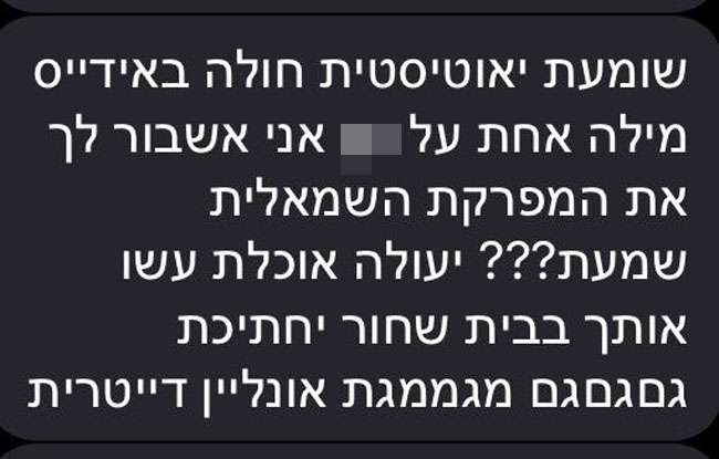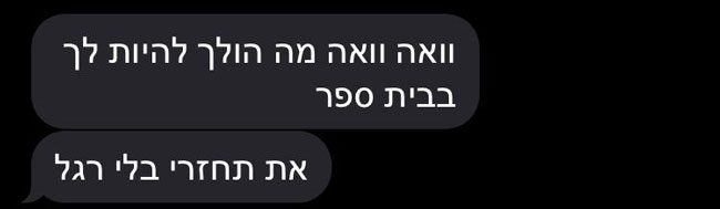 האכזריות של ההודעות אינה נתפסת והידיעה שאת ההודעות כותב יחד בכיתה ד׳ שרק לפני 3 וחצי שנים למד לכתוב, השפה, הרוע והאיום הממשי ניכר בכל מילה, הילדה שקראה את ההודעות נכנסה להתקף חרדה, אותו ניתן להבין. אל האיומים המאסיביים הצטרפו עלבונות אישיים ויחס מחפיר.