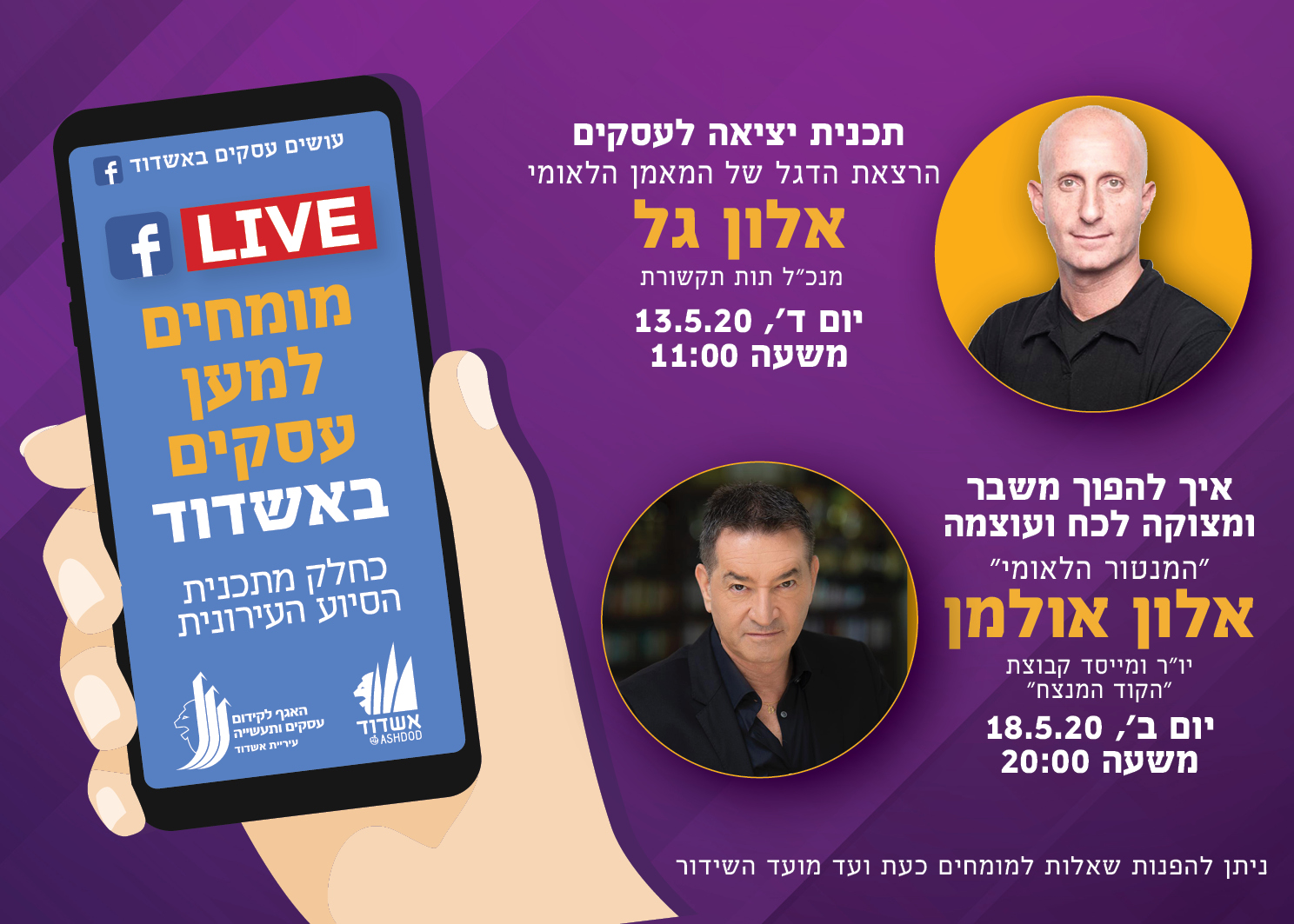 עצמאים בעלי/ות עסקים באשדוד? ההזמנה הזו עבורכם! סדרת מפגשי Facebook Live עם מומחים מהעולם העסקי הפיננסי והקואצ׳ינג במיוחד לעסקים באשדוד!