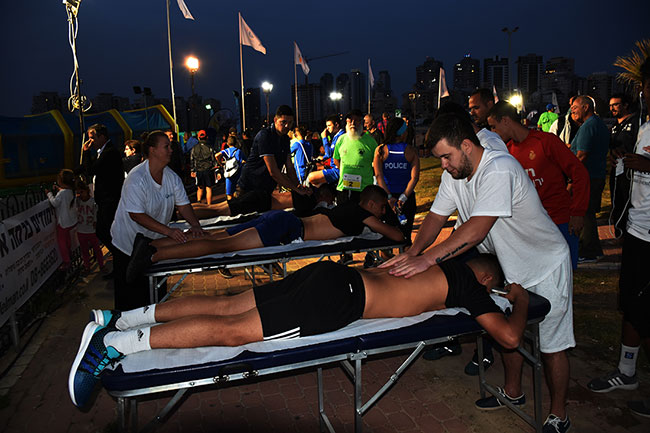 גם עמדות העיסוי של בית הספר ״שמעון גודלמן״ לקחו חלק ועיסו את המתחרים לפני ואחרי המרוץ.