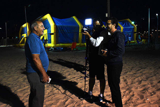 חוף יא׳ שדוגלל וקושט לקראת המרוץ נראה מרשים במיוחד ואווירת החלה עוד בחניון, עמדות מכירה של אביזרי ספורט וחלוקה של משקאות וחטיפי אנרגיה, פירות ותמרים הוסיפו צבע ועניין.