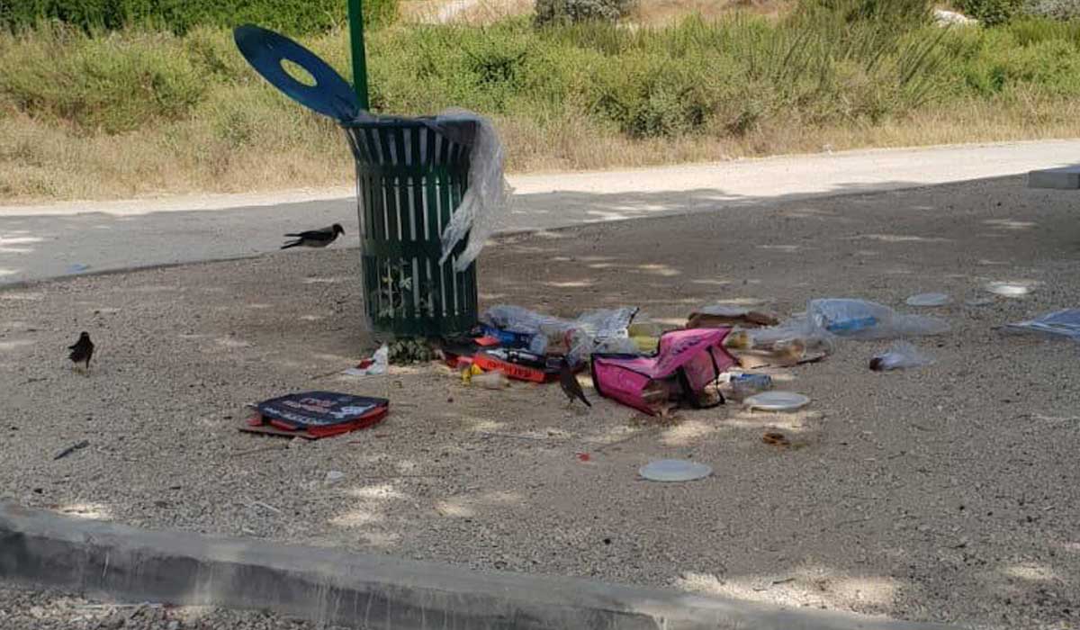 צילום פחי אשפה מלאים בטינופת שהושארה ע״י תושבי העיר בפארק המנגלים החדש שנבנה במיוחד עבור אותם תושבים שהתלוננו במשך השנים שאין איפה לעשות מנגל בעיר אשדוד.