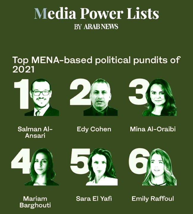 אדי כהן נבחר במקום השני מבין המשפיעים בתקשורת הערבית. כבוד.