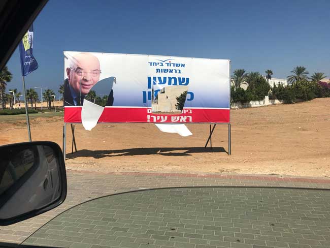 מפאת מגבלות תקציב של המועמדים שלא תכננו נכון את חלוקת המשאבים, אנו נחשפים יותר ויותר לשלטי שמשוניות שתלויות על עמודים, השלטים האלה אפשר לומר מזמינים השחתה שפס קליל עם סכין יפני חוצה את המועמד הנגדי ל-2 ומעלים אותו וכך, מתמודדים הפעילים עם הצבה חדשה מידי יום ביומו של שלטים בכל רחבי העיר.
