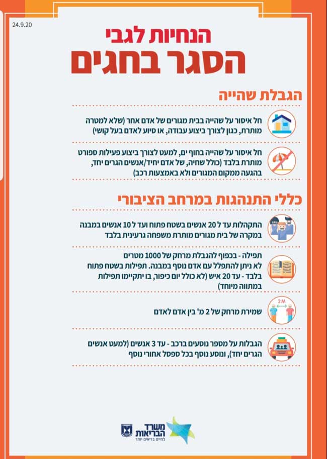 אם לא יהיו שינויים ברגע האחרון כמו שלצערנו אנו רגילים אלו הוראות ותקנות הסגר המשודרג שככל הנראה יימשך עד מוצאי שמחת תורה עם אופציית הרחבה ובכפוף לתוצאות התחלואה שבינתיים רק עולות.