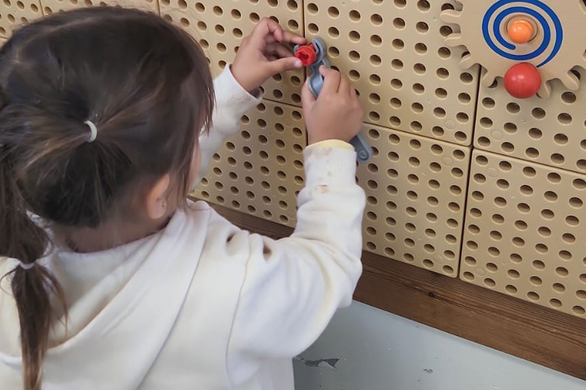 עם הלוח החדש סופקה ערכת עזרים עם צורות הנדסיות, פטריות, גלגלי שיניים, ברגים, נעצים.. ועוד, כאשר הבניה נעשית בצורה ידנית או באמצעות כלי עבודה בצורה חופשית או באמצעות דגם. "המשוב שהתקבל ממנהלות הגנים היה נפלא וההנאה מהפעילויות עבור הילדים הרחיב את הלב" אומרים באגף על הקיר המיוחד המציע עשרות פעילויות שונות ומגוונות המעשירות ומפתחות את הילדים.