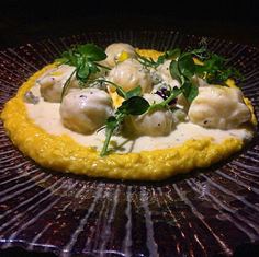 ניוקי ממולה גבינות – על מצע קרם תירס עם נגיעות שמן כמהין וגבינה כחולה. לאוהבי הגבינות הכחולות. המחיר למנה: 66 ₪ .