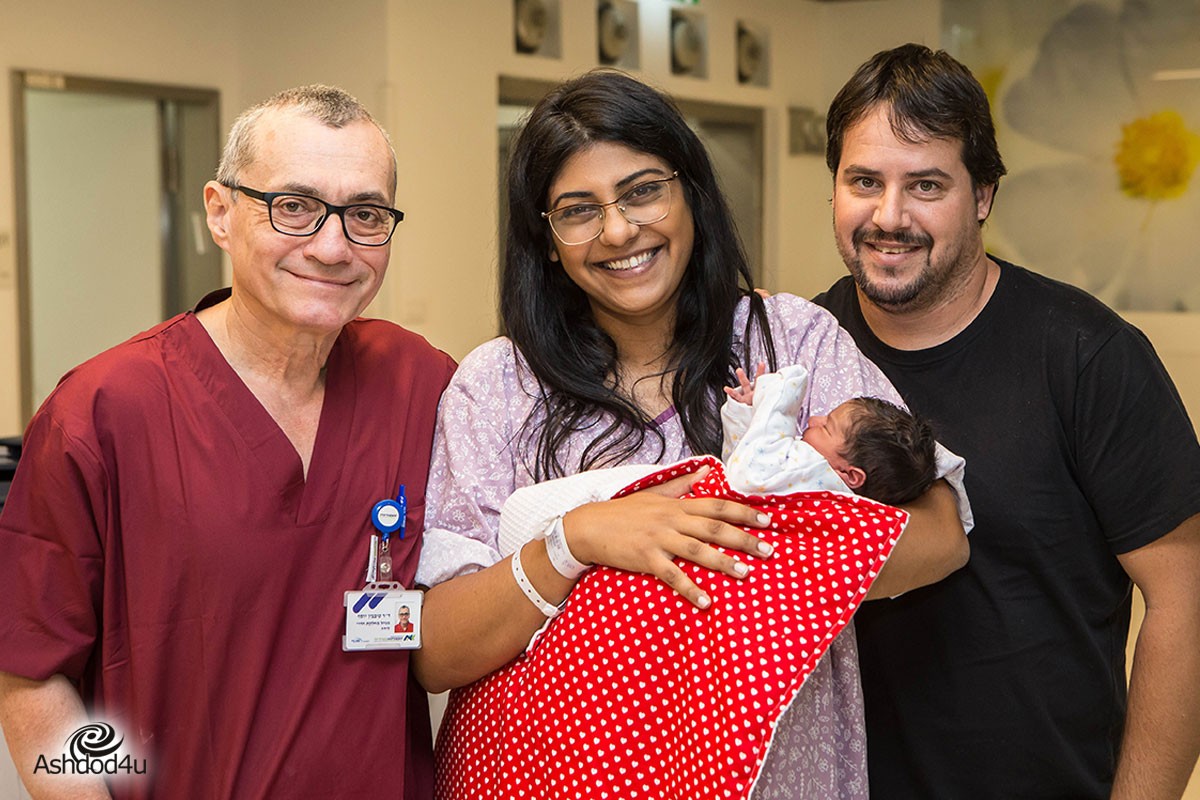 ליאור כהן, מורן כהן-בלסטיצר, וד"ר יוסף טובבין, מנהל מחלקת חדרי לידה, בית החולים הציבורי אסותא אשדוד