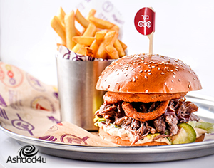 מנת החודש – כריך ציידים – המבורגר מנתחים מובחרים של בשר מעושן עם רוטב ברביקיו ועליו בורגוס רינגס, מוגש בלחמניה עם איולי צ'פוטלה, עלי חסה ופרוסות מלפפון בכבישה ביתית.