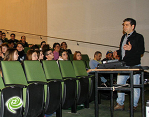 בתמונה: טל קדם, מנהל החממה הטכנולוגית the hive אשדוד בהרצאה מול התלמידים.